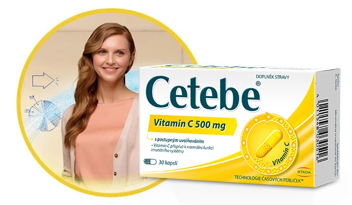 Imunitný systém je dôležitý pre naše zdravie, pretože nás chráni pred infekciami. Všetky produkty Cetebe® obsahujú vitamín C, ktorý je nevyhnutný pre normálnu funkciu imunitného systému. V závislosti od vašich potrieb, či už chcete podporiť imunitu, znížiť mieru únavy a vyčerpania, alebo podporiť fyzické a psychické funkcie vášho organizmu, môžete si zvoliť výživové doplnky obsahujúce vysokú dávku vitamínu C alebo výživové doplnky obsahujúce vitamín C v kombinácii s inými vitamínmi alebo minerálmi.